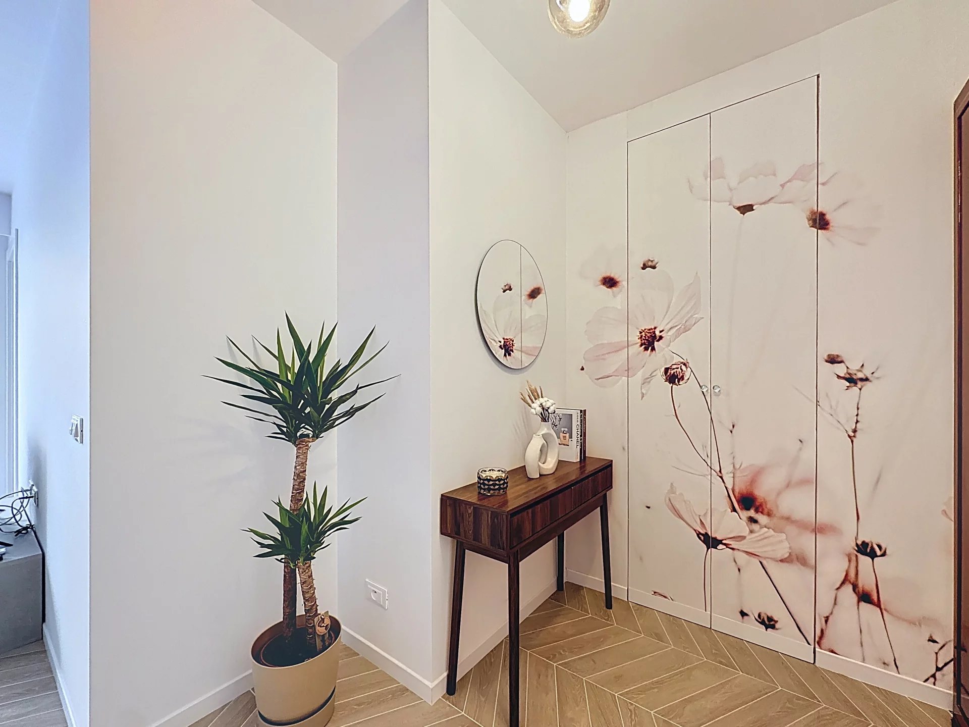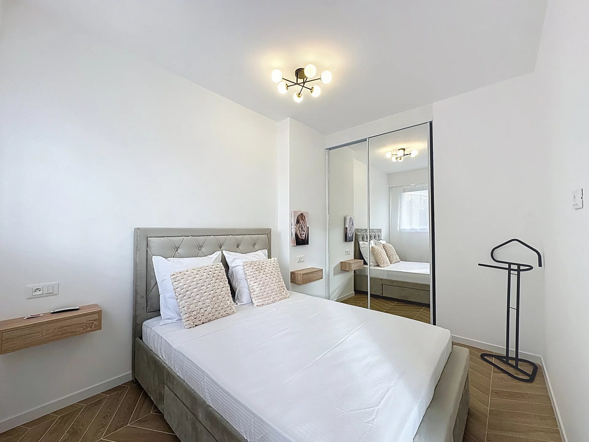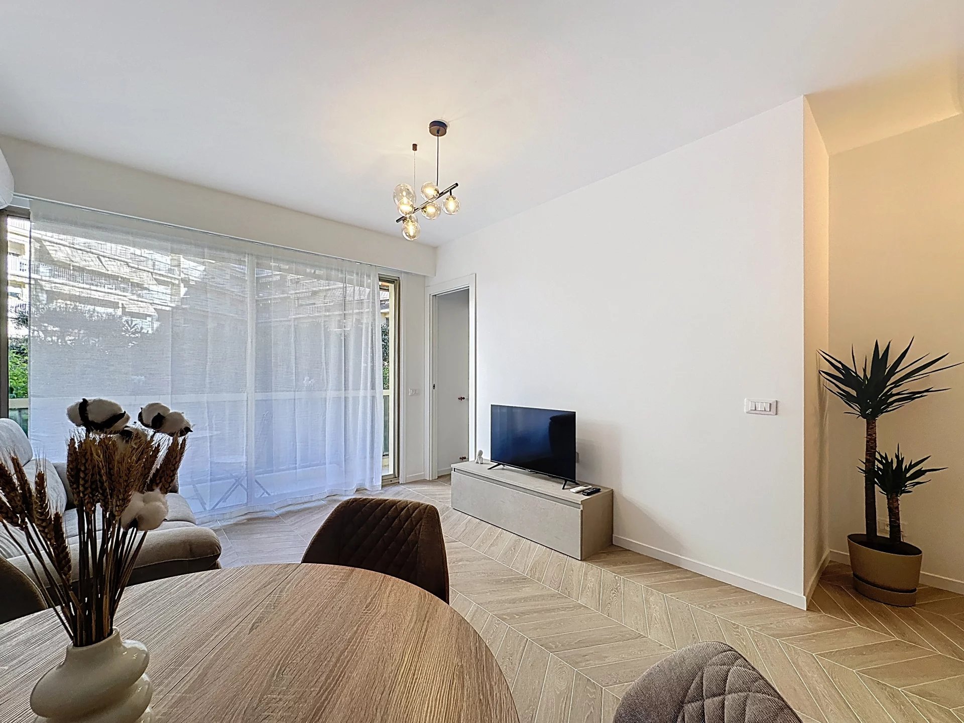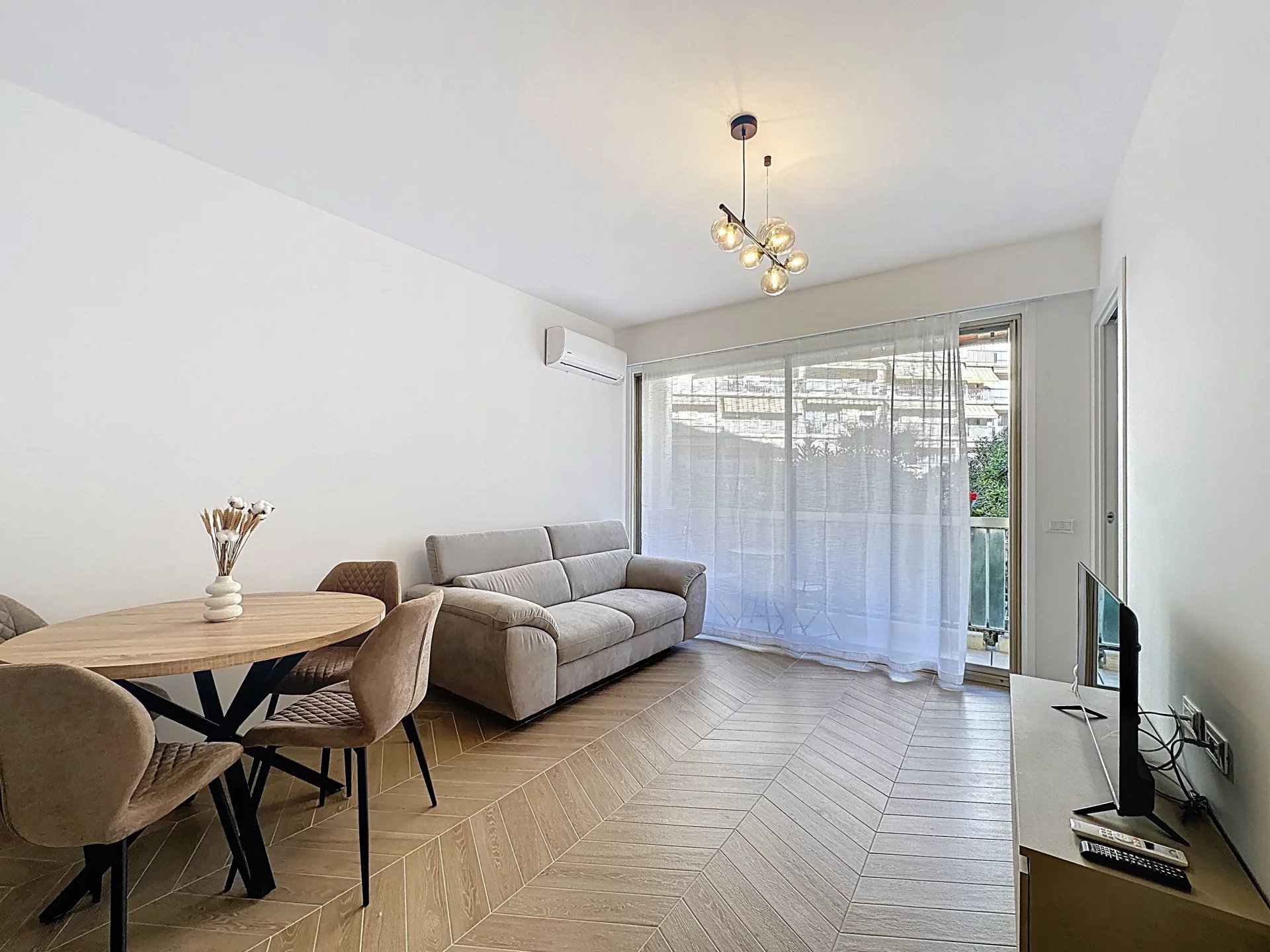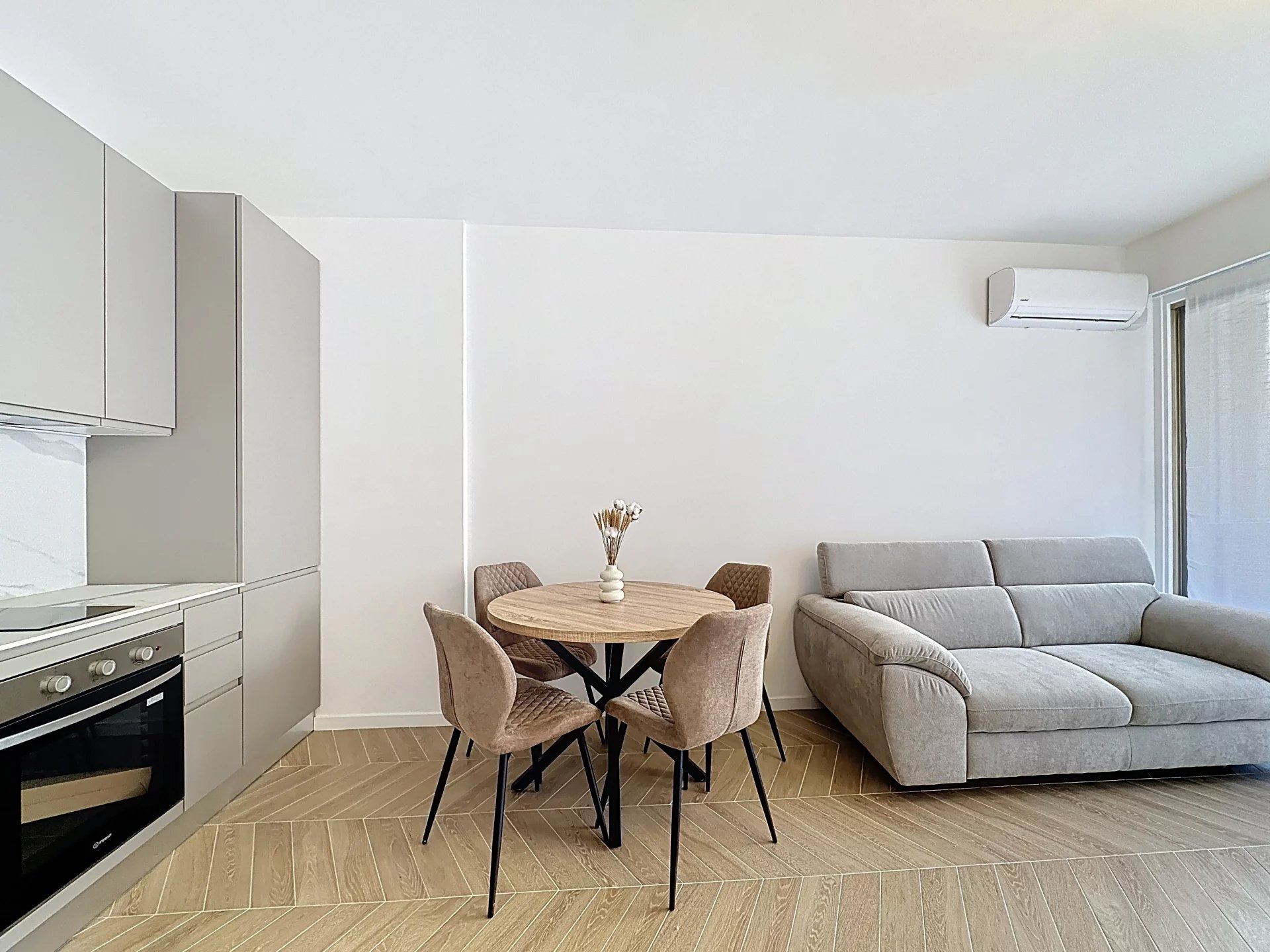 In a well-maintained residence, on the second floor with elevator, splendid 2-room apartment ENTIRELY RENOVATED with quality materials, approx. 35m², comprising: entrance with large cupboard, shower room with WC, living room with fully-furnished and equipped open-plan kitchen, bedroom with cupboard. At the front of the living room is a pleasant balcony overlooking the quiet condominium garden.