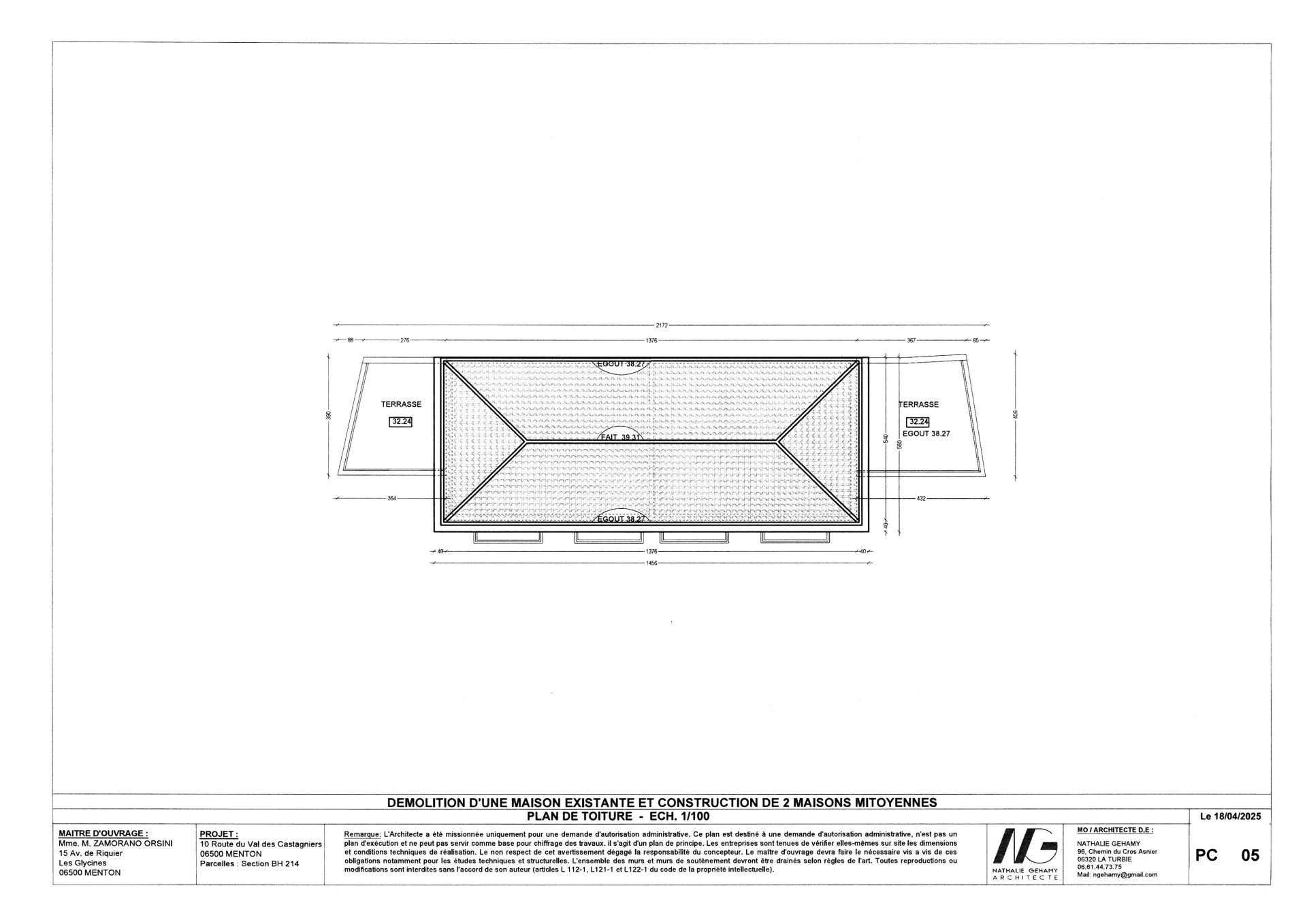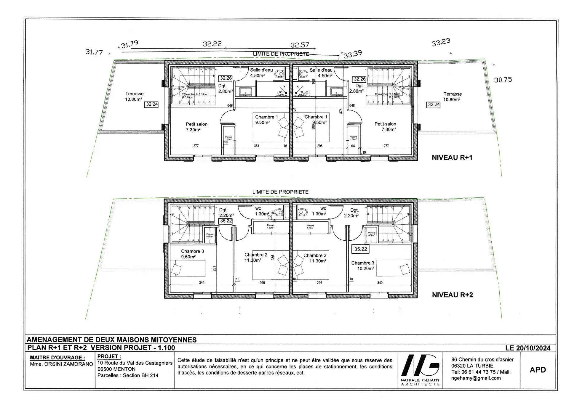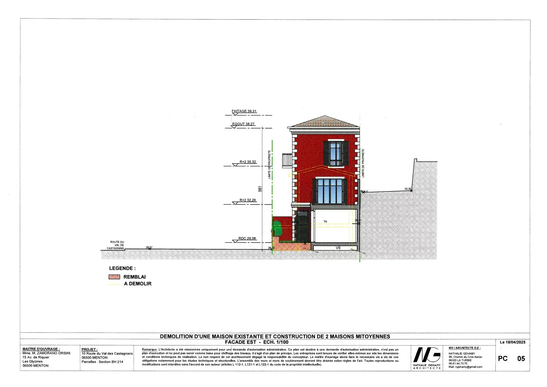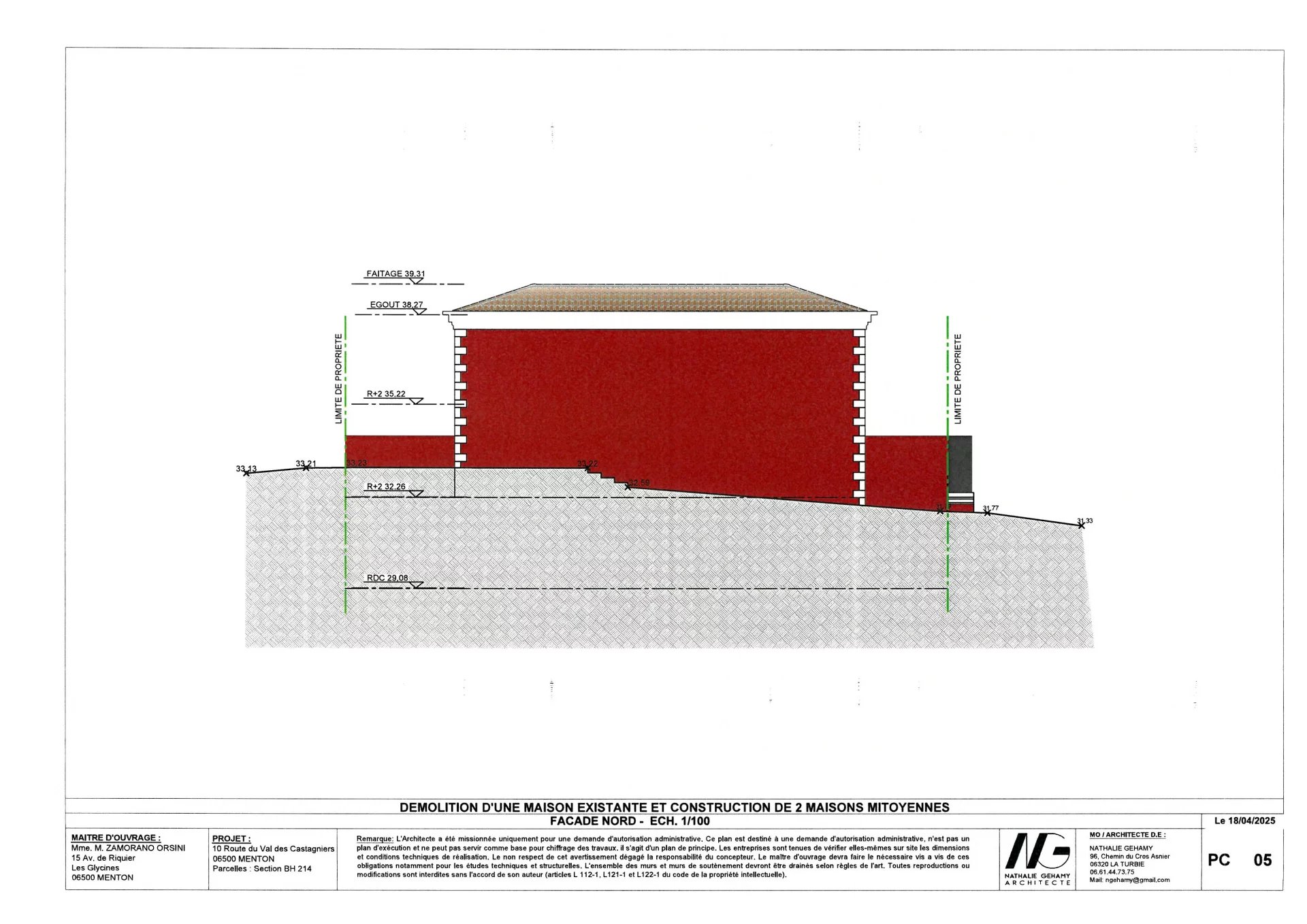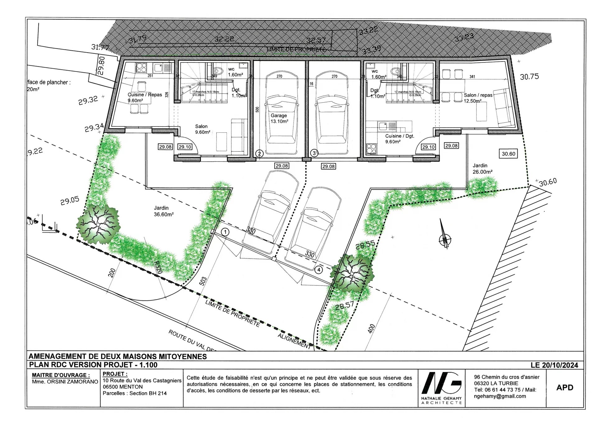 Projet neuf avec une permis accordé et purgé pour la création de deux maisons mitoyennes en copropriété avec rez de chaussée et deux niveaux, jardinets extérieurs, terrasses, garage.