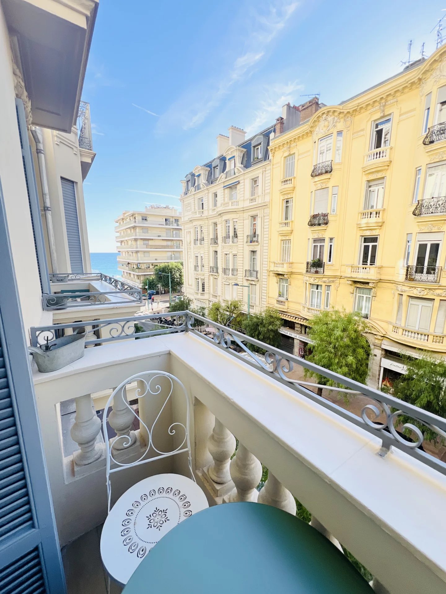 Il offre un salon avec bow-window et moulures d'origine, trois chambres confortables, un dressing, une salle de bains spacieuse avec wc, et trois balcons avec vue mer latérale.